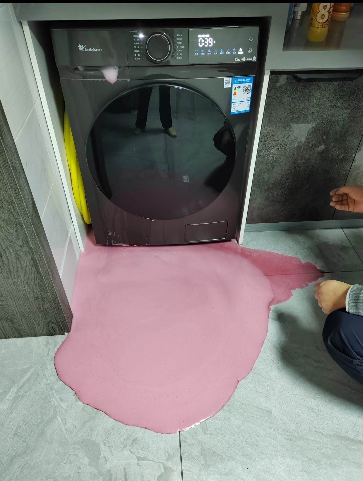 和平常一樣,我把髒衣服一股腦塞進洗衣機,設定好程式就轉身去忙別的了。沒過一會兒,二寶在陽臺大聲喊:「媽媽!地上都是水,好髒!」我心裡一驚,趕緊跑過去,只見一大片粉粉的水正從洗衣機底下不斷湧出,順著瓷磚四處流淌,連洗衣機門那兒都開始往外滲水,場面十分狼狽。