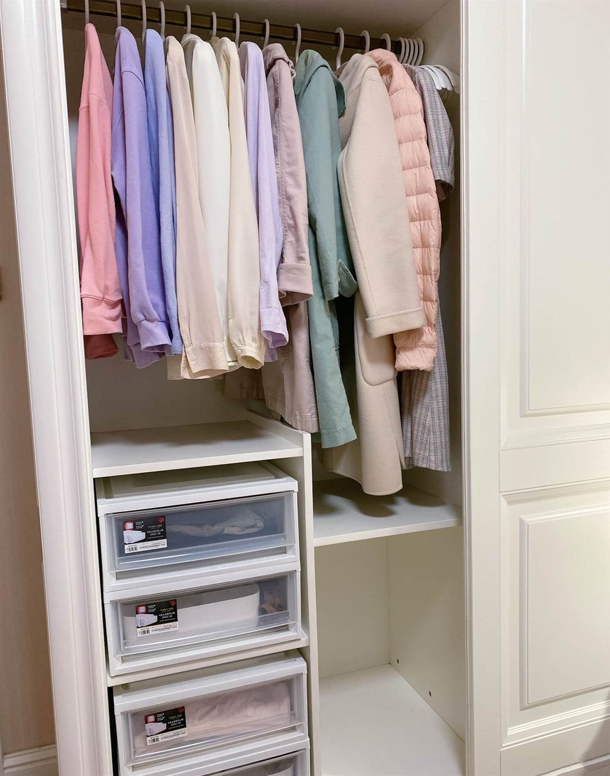 重新整理過的衣柜,瞬間變得清爽了許多,甚至還多出了空余的格子。