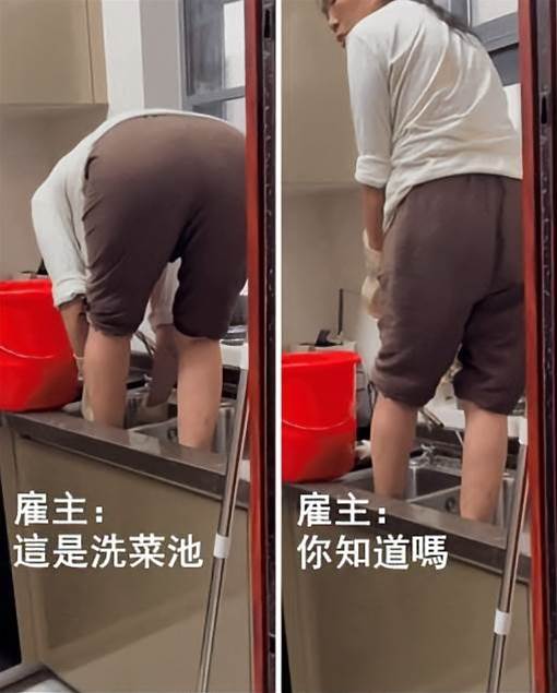 這位網友雇傭了一位保潔阿姨來打掃家里的衛生。當天,阿姨開始工作后,網友在旁邊稍微走開了片刻。然而,當她返回廚房時,眼前的一幕讓她瞬間崩潰——保潔阿姨竟然雙腳踩在了洗菜池里,正在「努力」地工作。