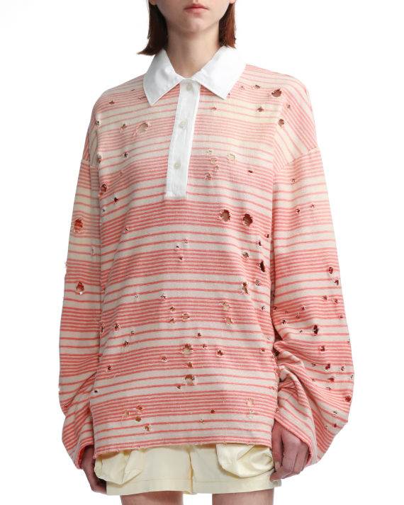 該名網友在小紅書曬出照片,只見照片中的大叔穿著一件紅黃條紋的上衣,衣服上疑似因為老舊而破損不堪,到處都是一個又一個的小洞,讓他不禁感到同情。只不過雖然這件衣服乍看相當不起眼,但其實要價不菲。