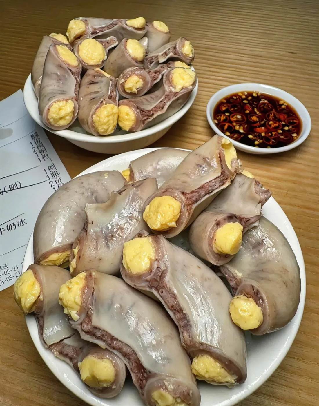 在全家期待的目光中,我夾起最小的一段:,牙齒剛咬破腸衣,滾燙的黃色膏體就噴涌而出,口感像融化的芝士,卻帶著魚肝油般的腥甜,后調突然竄出一股刺麻,舌根開始不受控制地顫抖。
