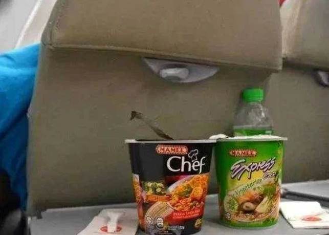 一般來說,長途飛機上都備有泡麵的,只不過因為味道比較大,空姐一般不會主動提供。如果你有要求,她們一定會提供給你的。