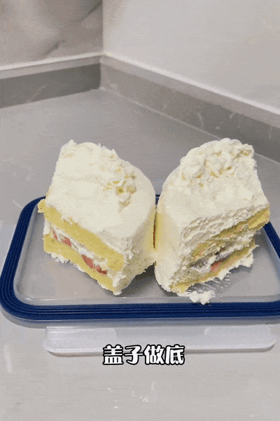 她用的就是家家戶戶基本都有的保鮮盒,把沒吃完的蛋糕放在保鮮盒的蓋子上,然后再把盒身倒扣在盒蓋上密封起來,再放進冰箱,這樣保鮮效果好,還不會串味,更節省空間。