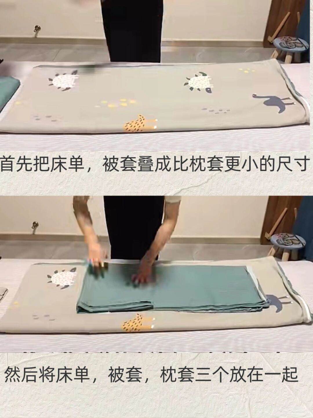 以往我最不喜歡的就是收納四件套了,因為枕套、被罩、床單的尺寸都不一樣,堆在一起總是亂七八糟的。