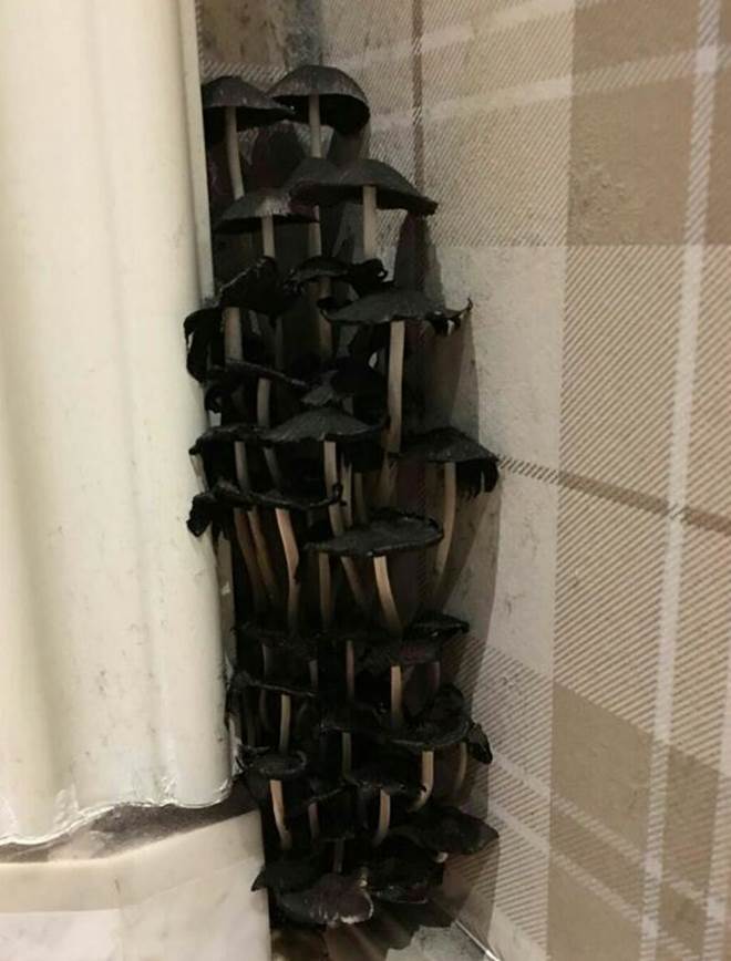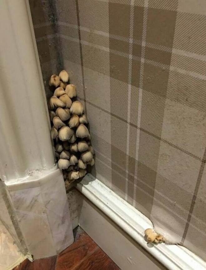 結果在撥除蘑菇沒幾天後,之前長蘑菇的床頭竟然有長出了很多的黑蘑菇,這也是讓她非常害怕。所幸女子的丈夫出差回來,經過仔細觀察後發現牆角長蘑菇可能是因為牆角漏水,而牆紙後邊是木製牆板,因為潮濕所以長出了菌類。
