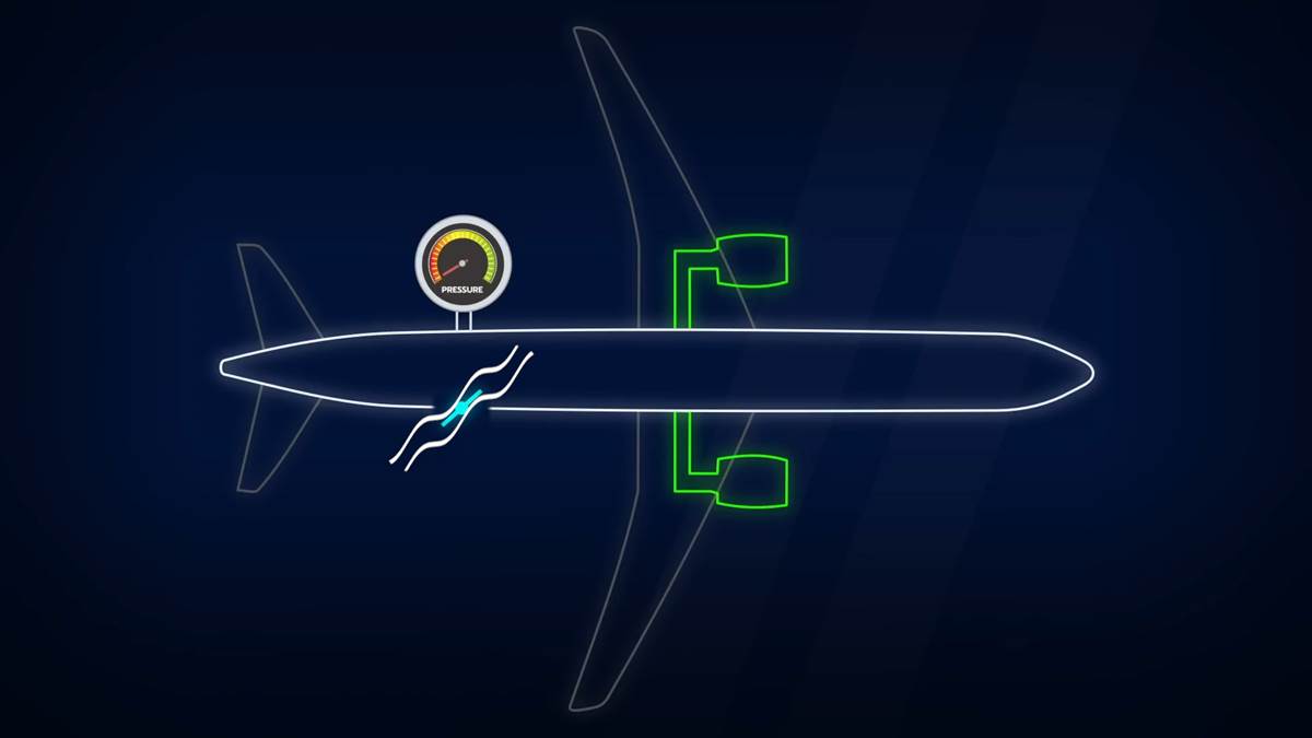 來看飛機機腹上有一個不起眼的外流活門,它就是專門用來平衡內外氣壓的裝置。在飛機落地后,這個外流活門會自動打開,將客艙和外界相互聯通釋放艙內壓力,使機艙內外的氣壓達到平衡,這個釋放的過程其實就是大家等待的時間。那乘務員并不能下機盯著這個外流活門看,所以這個客艙壓力警告燈就起作用了。