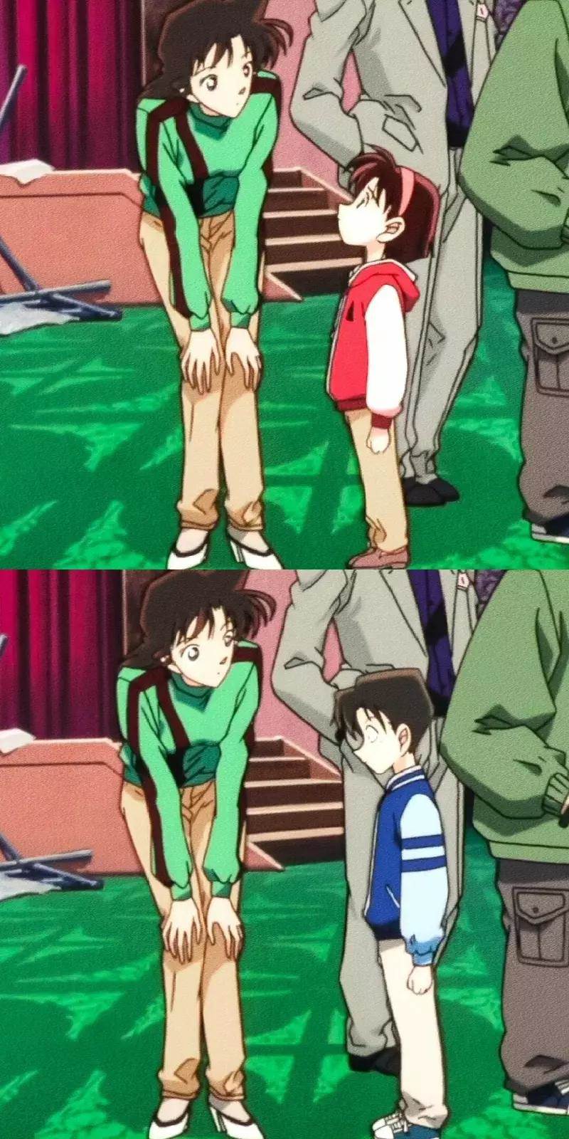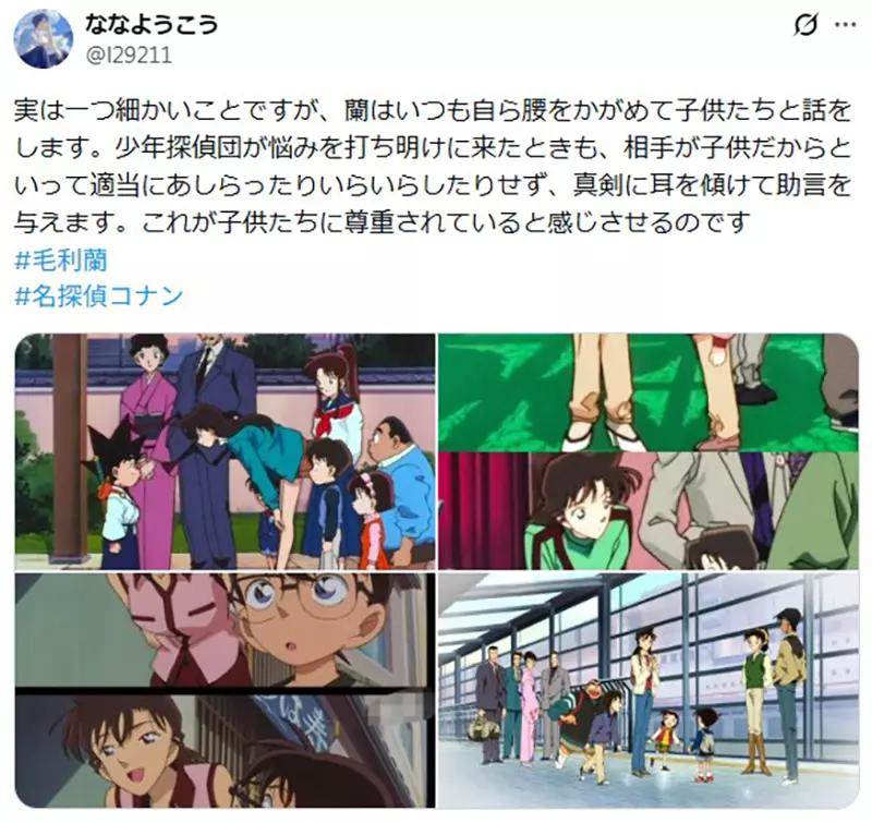 當然這個是老粉絲才知道的「長期設定」,熟悉《名偵探柯南》的人都知道,毛利蘭彎腰、蹲下和小朋友交流,並不是偶然。