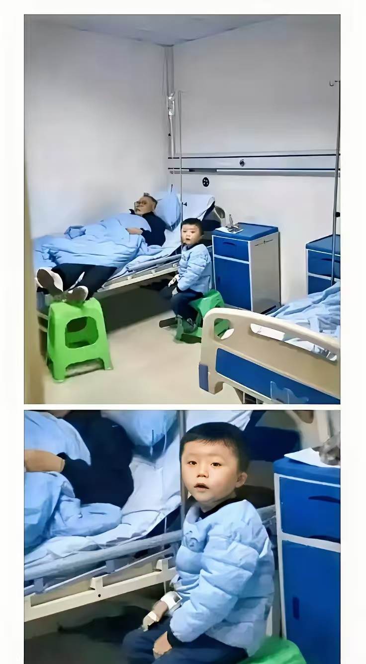 網友描述在醫院看到的場景:病床邊坐著看似十歲不到的男孩,眾人初時紛紛夸獎「孩子真乖,懂得守候父親「,認為這是孝順典范。然而細觀發現孩子手背貼著輸液膠布,而本該屬于孩子的病床上正躺著父親酣睡。