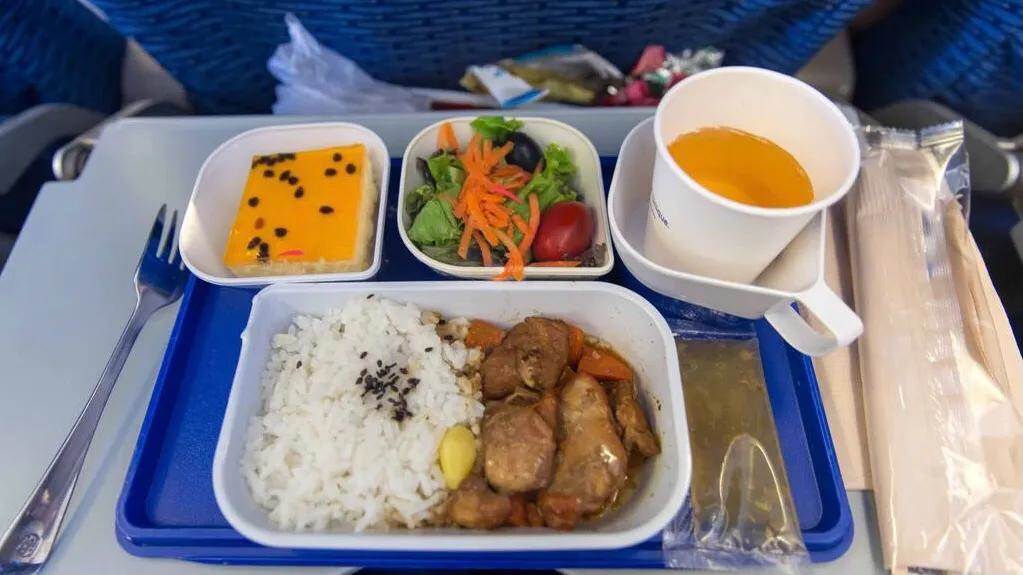 一般情況下,飛機餐的主菜是牛肉、雞肉和豬肉,再配些沙拉、甜品、小菜等,讓乘客填下肚子肯定是沒問題的。