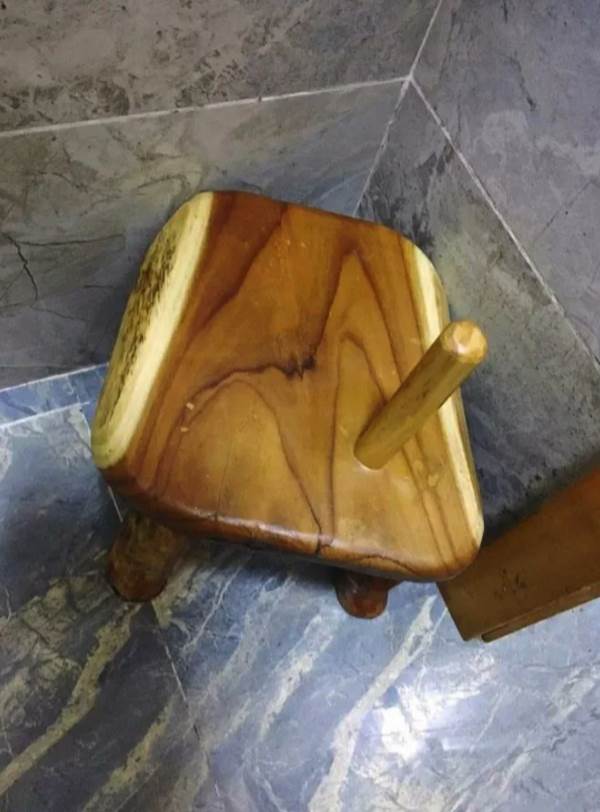 一位網友就在小紅書上貼了一張照片發問:「請問,這張凳子幹什麼用的呢?在酒店房間的浴室發現的。。。」只見畫面中是一把放在角落裡的小木凳,不過在邊邊的地方卻豎了一根木棍在椅面上,真的讓人有點搞不懂是什麼用途...