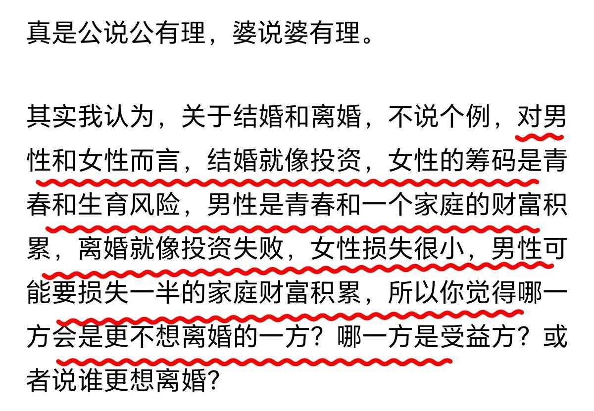 不論男女,結婚就像一場投資,幸福的家庭都是相似的,不幸的家庭各有各的不幸。這位網友說的也很有道理。