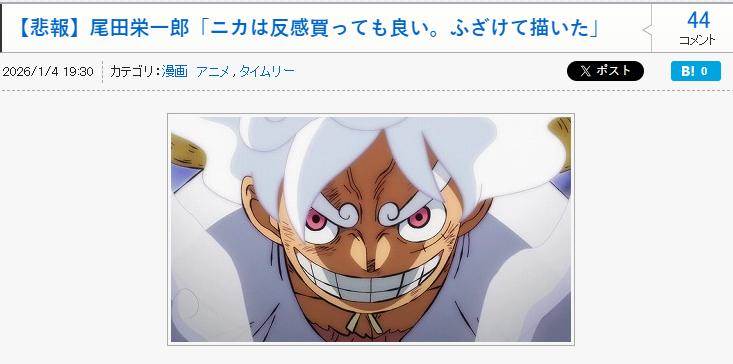 這時候有人發現方式討論了魯夫五檔,尾田表示「尼卡被人討厭也無所謂,是我帶著玩笑心態畫的」這瞬間引起了爭議。