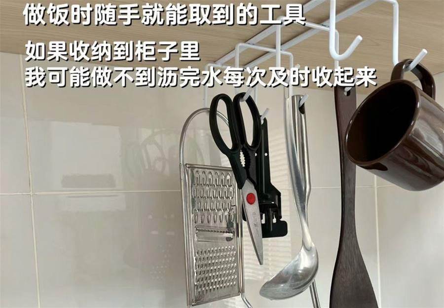 廚房最好是準備一些明面上的掛鉤,用來隨手收納清潔完以及用后的餐具與廚具,但注意量不要太多,這樣就能在保持簡單干凈的同時,方便隨手收納了。