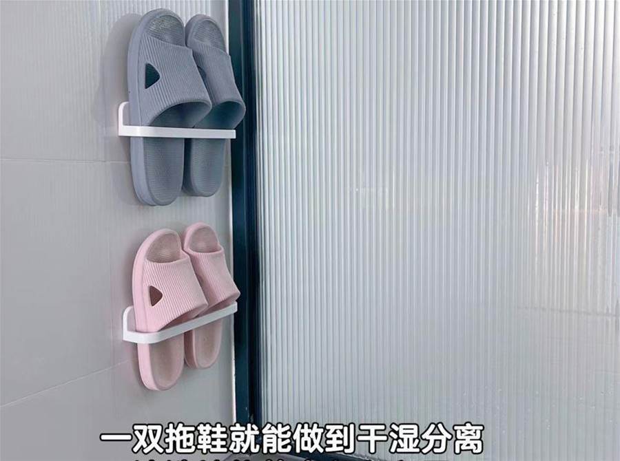 衛生間準備專用的拖鞋十分有必要,在洗完澡后換下來,不將水漬帶入干區,更能避免清潔打理的一系列麻煩;再安裝個墻面掛架,就更能減輕地面收納的負擔了。