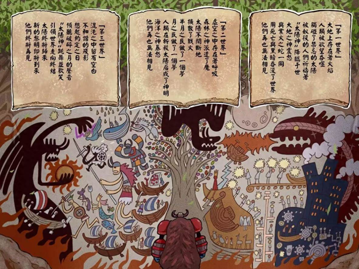 第一世界的描述文字中,有以下幾個關鍵詞:禁忌的太陽、業火之蛇、大地之神。我們一個一個來說。