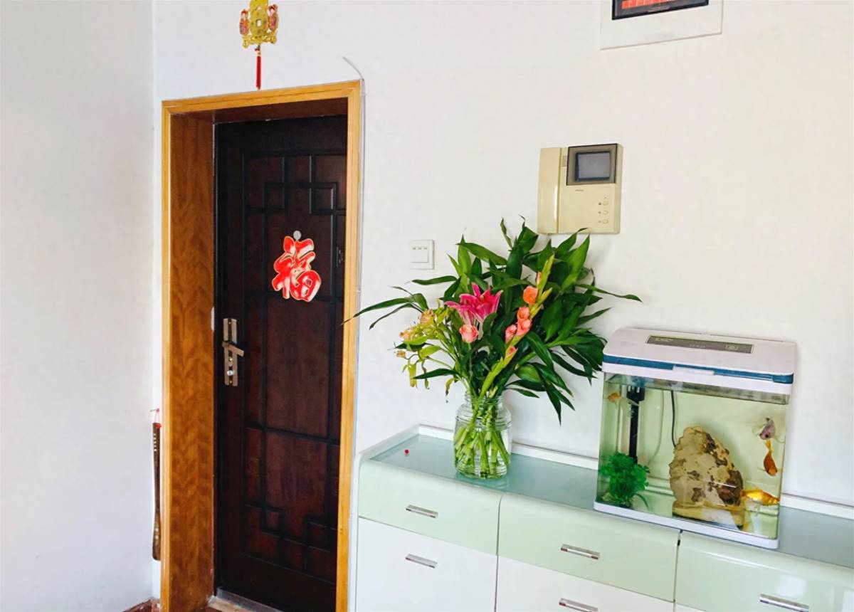 鞋柜放在了進門一側,柜體面積不大,但對于老兩口來說,也完全夠用了。而上方擺放的魚缸,既是一種裝飾,也為生活帶來了一些趣味。