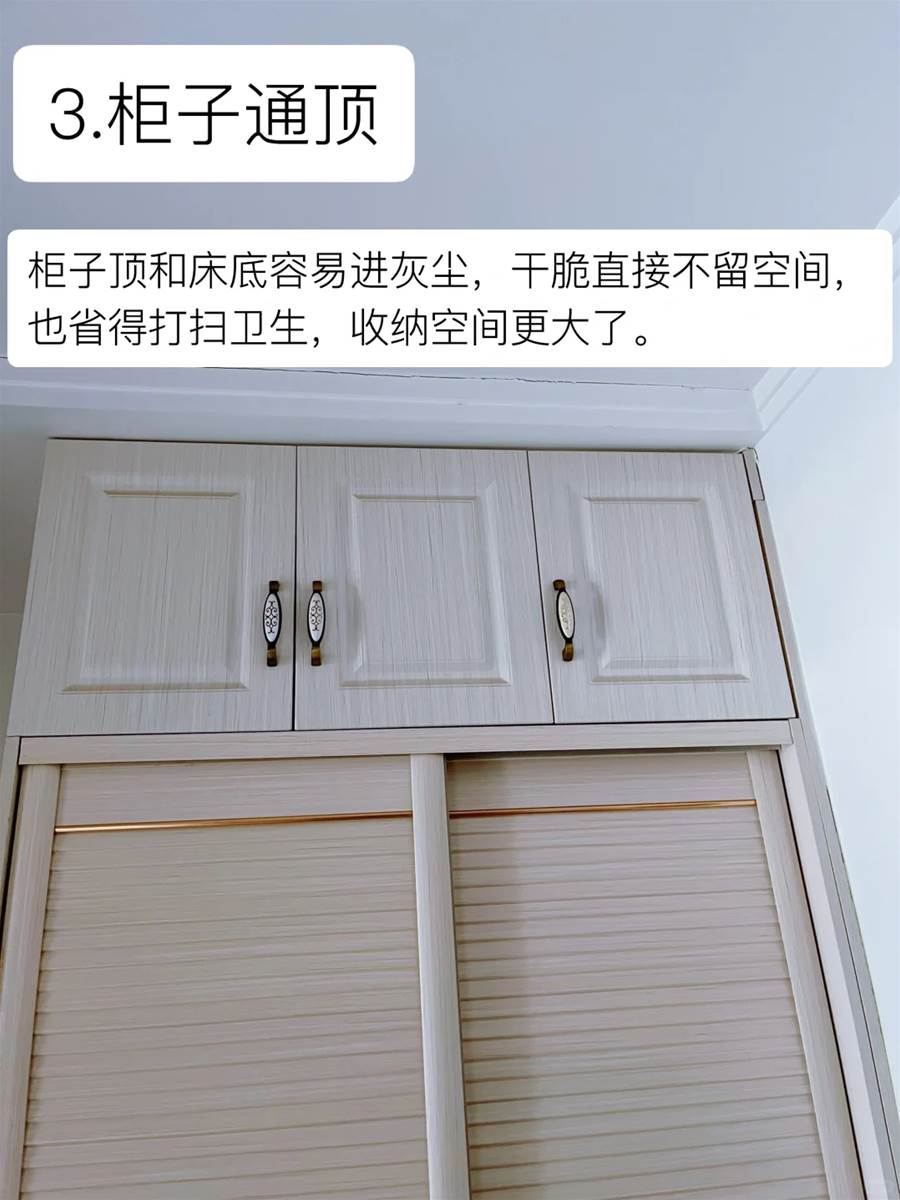 我家之前床底留了 10 厘米空隙,每周都要趴地上用長桿撣子掃灰,柜子頂也堆滿舊箱子,擦一次要搬半天東西。後來裝修時干脆讓師傅把柜子做通頂,床選 「落地款」—— 現在柜子頂不用擦,床底也不會積灰,收納空間還多了一半,換季的被子、行李箱直接塞通頂柜,客廳再也不堆雜物了。