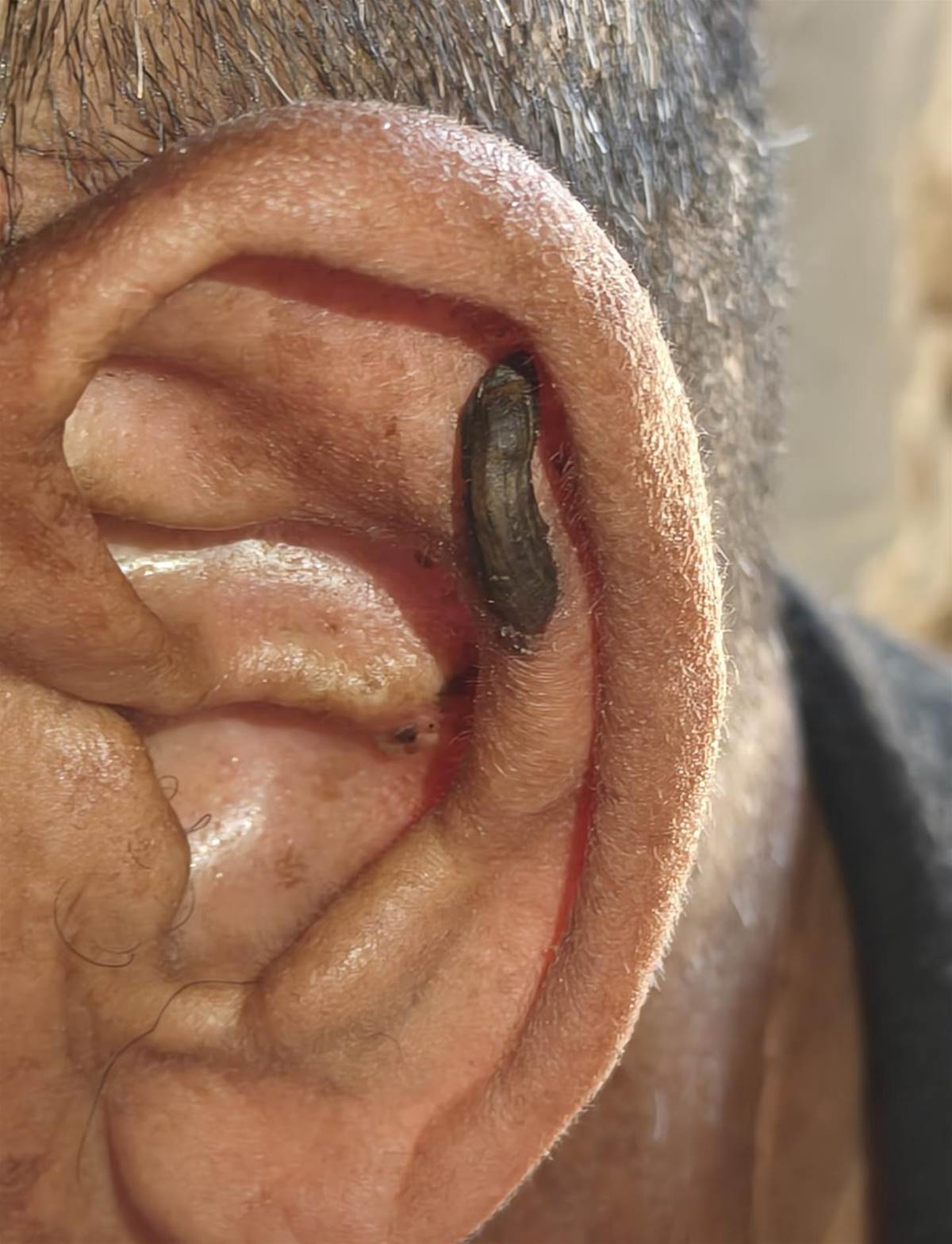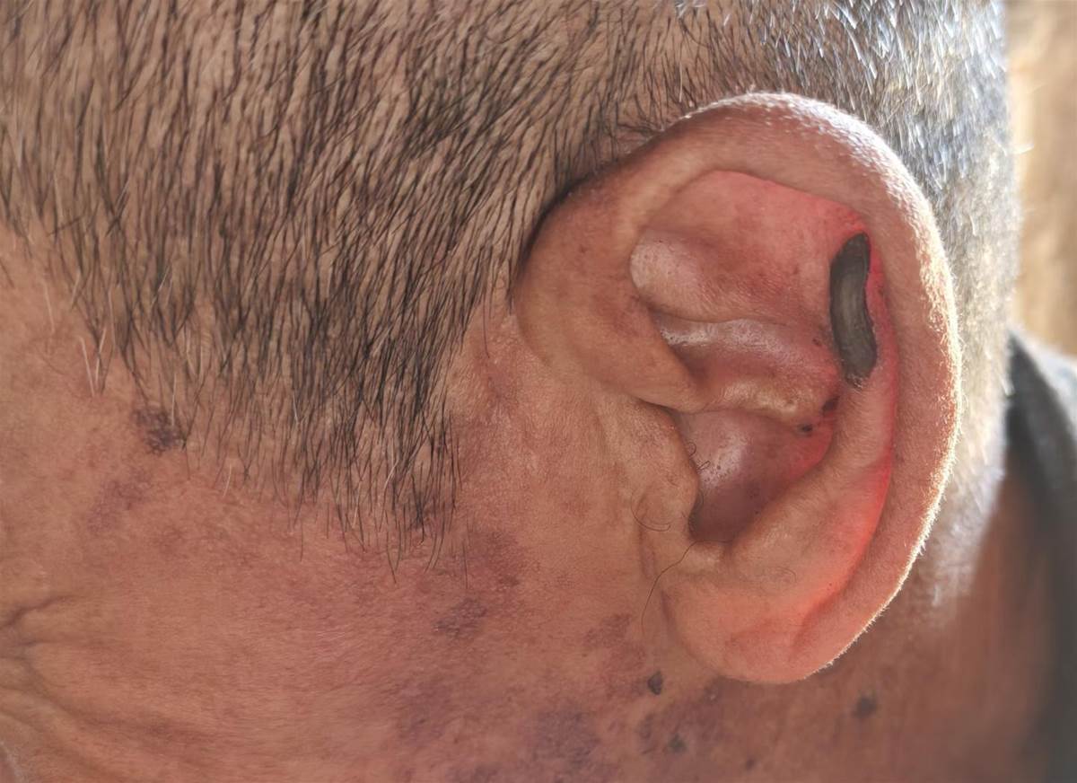 爺爺的耳朵上長了一個黑黑硬硬的東西,大家知道是什麼嗎?(家里只有奶奶和爺爺在家,爺爺奶奶單獨去醫院的話我不放心,我在外地念書,放假回來帶爺爺去看,就是想知道這個是什麼,我開學前看到爺爺的耳朵上有個黑點,以為是結痂了,但是不知道怎麼越長越大,我電話了問爺爺,他說不痛)。