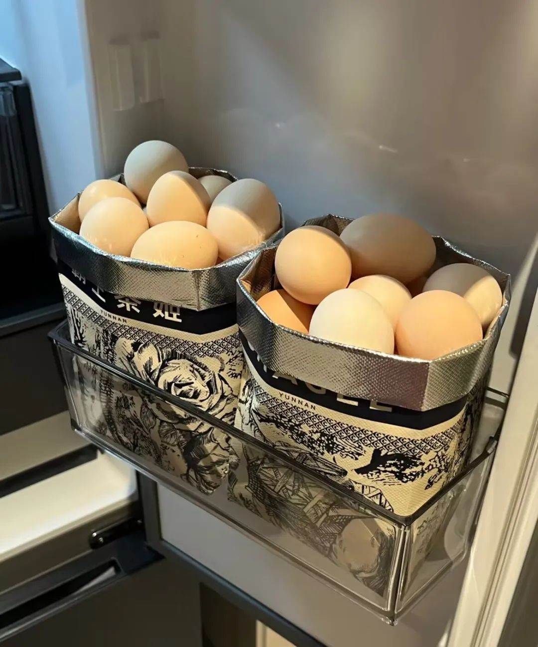 而年輕人發現,用奶茶袋裝雞蛋,比專門的收納盒好用多了。