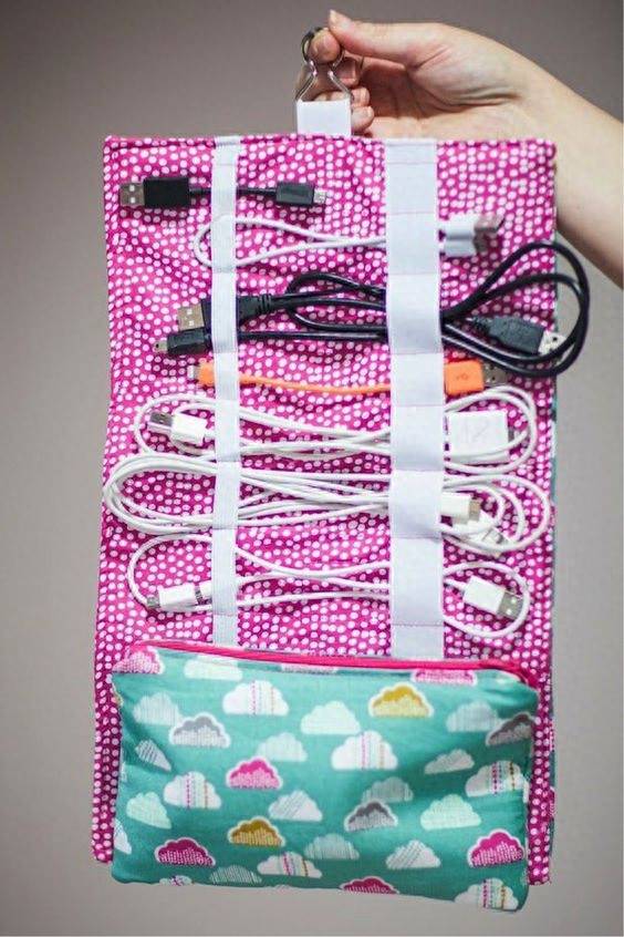 家里的電子產品多,各路數據線自燃也多。做好分類,找塊布,把絲帶分斷縫合全搞定。