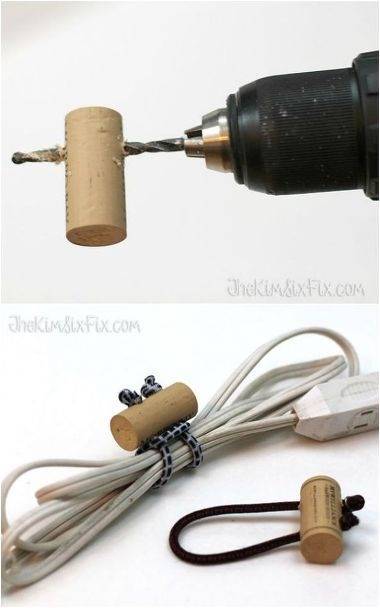 家里的插線板線太多太雜太亂,用紅酒塞鑿出2個眼,拴上繩子就可以把他們美觀的捆綁起來了。
