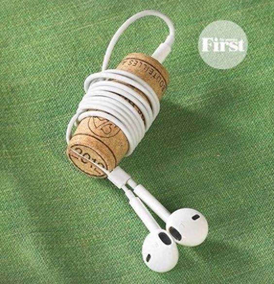 不用的耳機還亂成一團麻隨便一扔,一個紅酒塞也能解決收納問題,而且,放在包里也很輕巧。