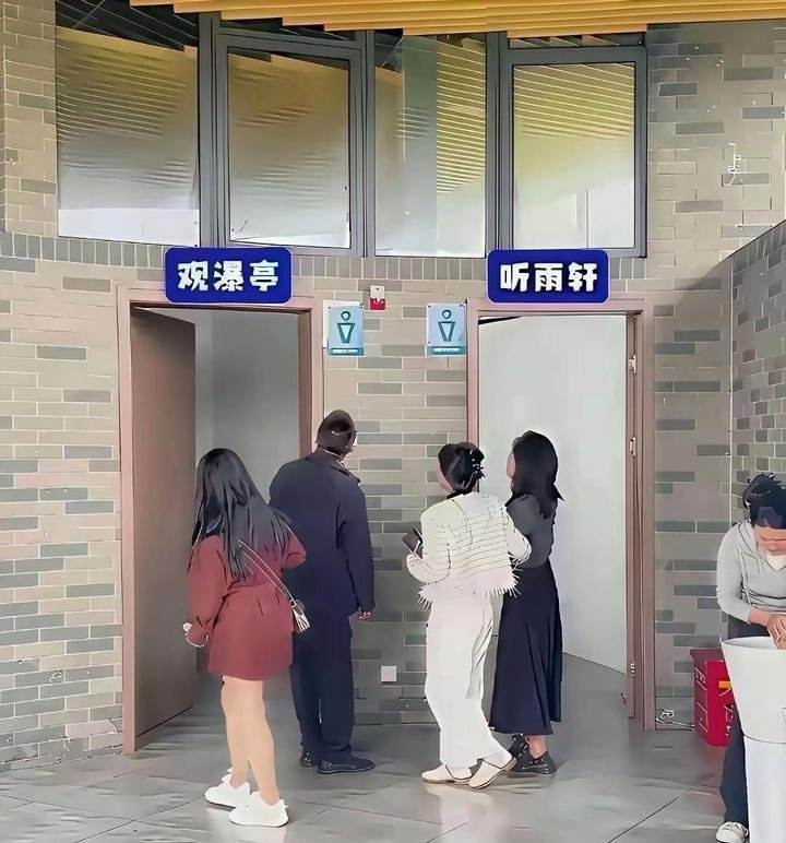 很快,有「懂行」的網友給出了答案:「觀瀑亭」是女廁,「聽雨軒」是男廁。