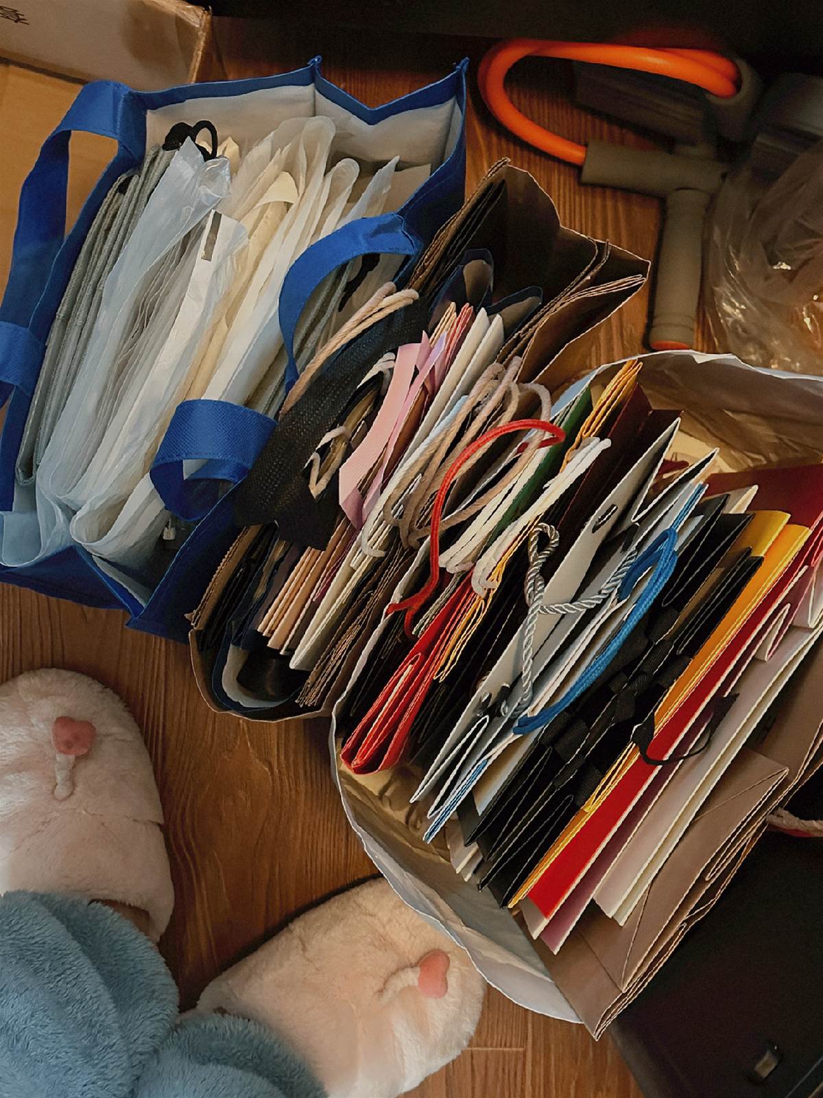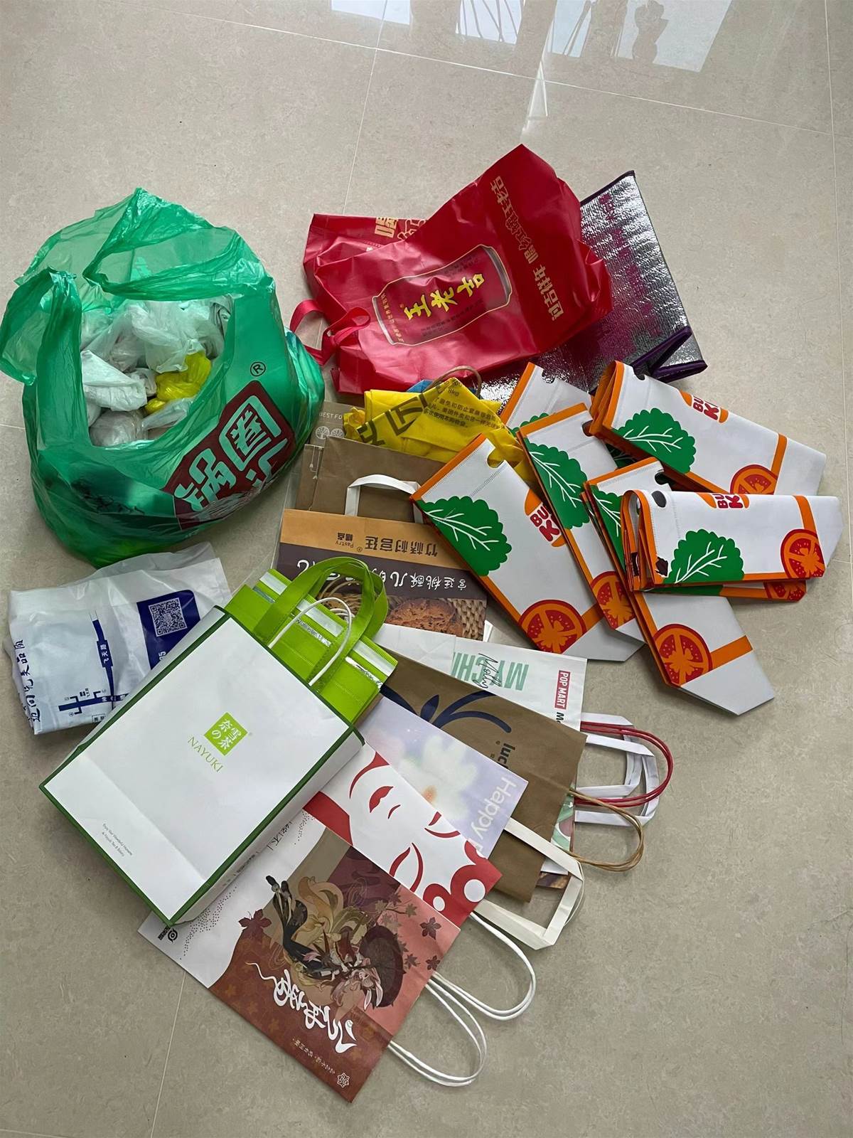 我家的購物袋,基本都不舍得扔;特別是品質還不錯,顏值高的,總覺得哪天會派上用場。但事實上,卻很少用到。這三大袋購物袋,積攢了三年,搬家那天還是全部扔掉了。