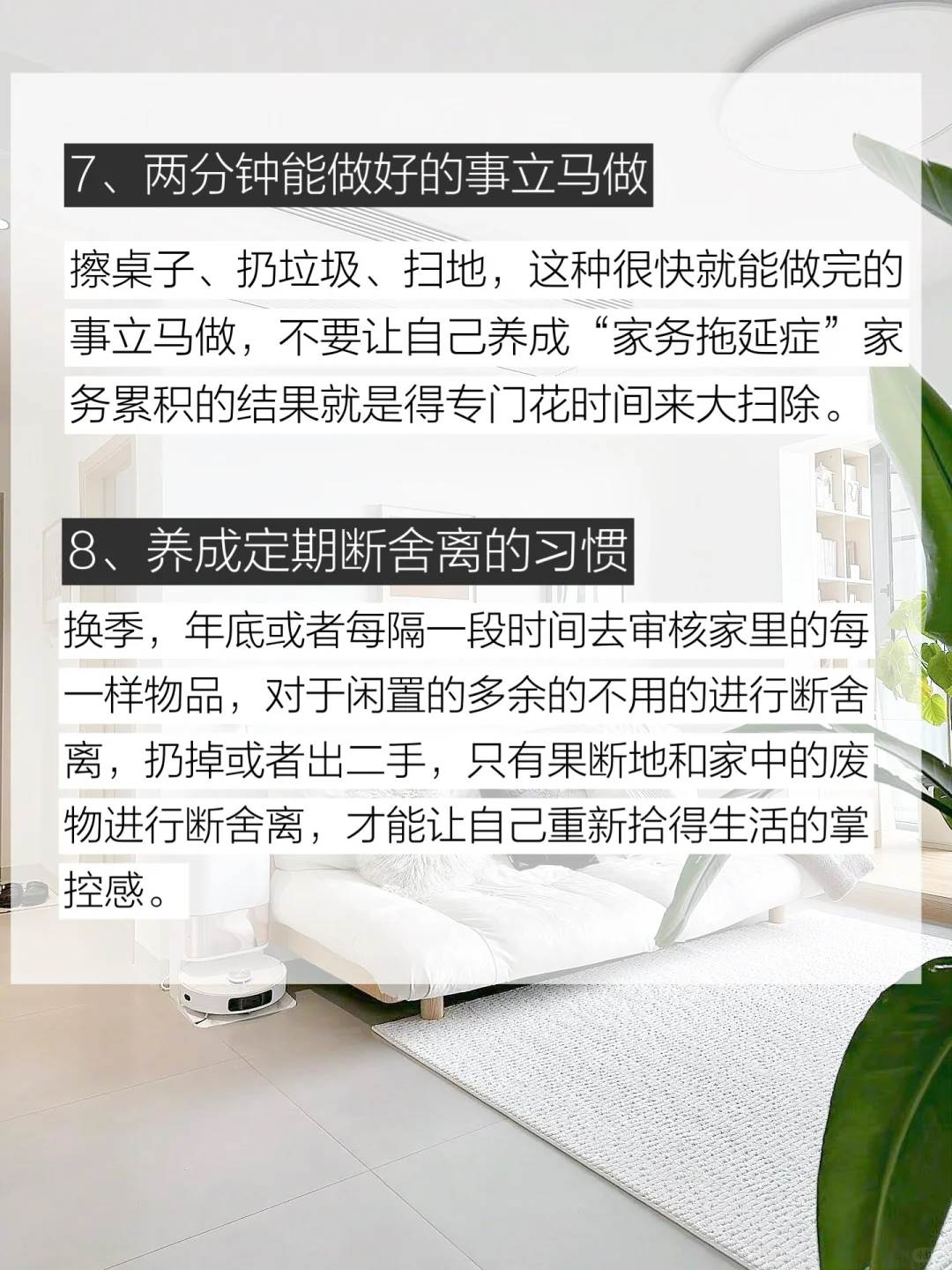 總之,保持家居環境的整潔和有序并不是一件難事。只要我們養成上述這些好的家務習慣,并付諸實踐,就能讓家持續保持干凈和舒適。現在就開始行動吧!
