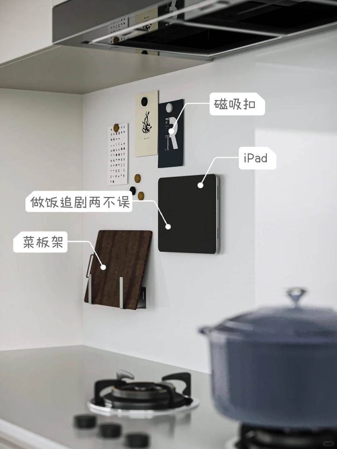 磁吸的物品基本都能上墻,還可以準備一些磁吸貼,貼在需要上墻物品上。