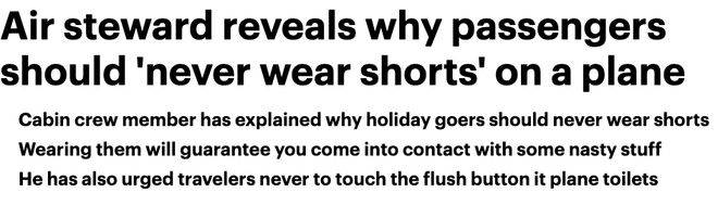在登機前穿上一條短褲可以讓你接觸到飛機和座位上的細菌。